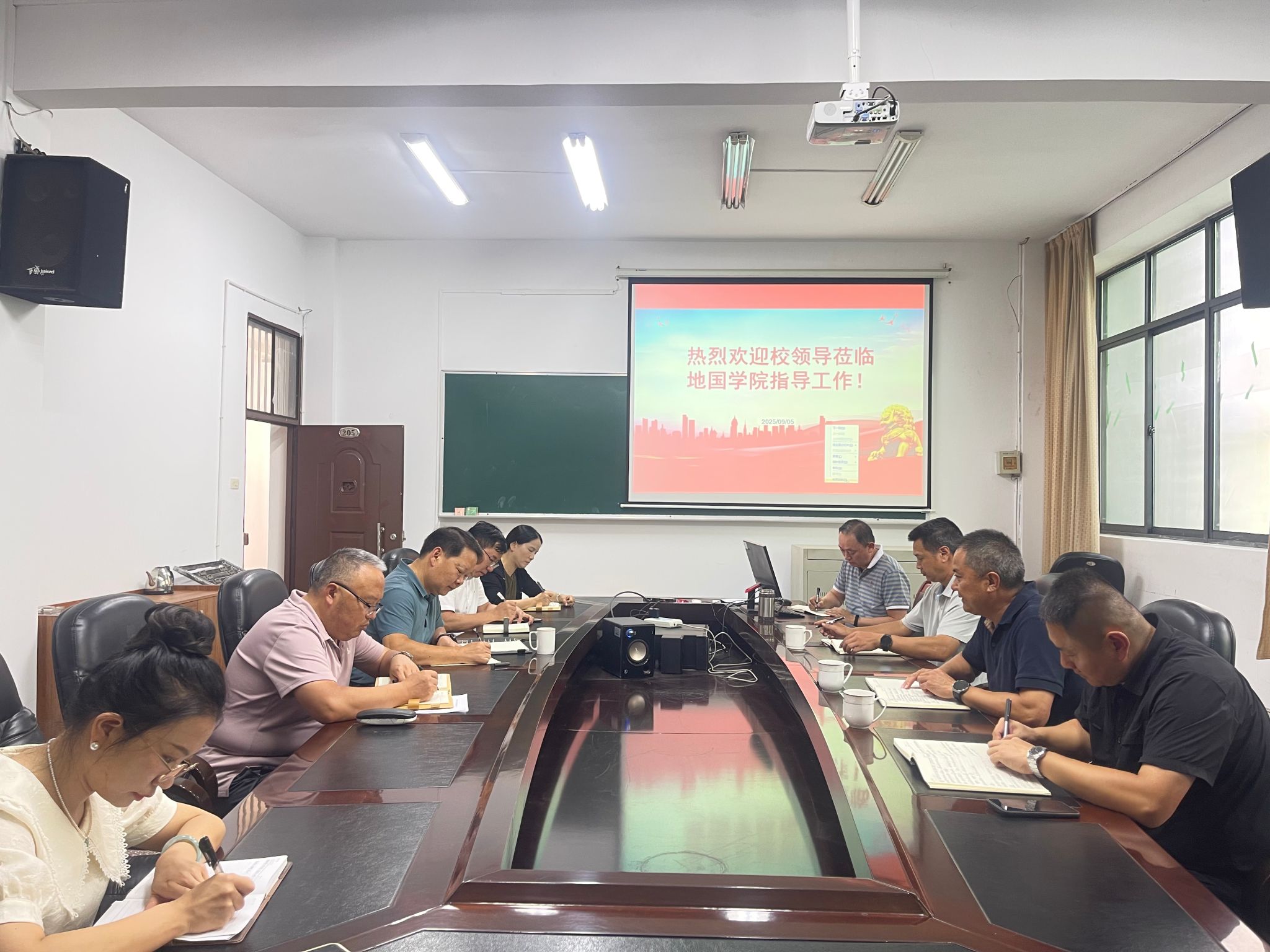 针对学院学科建设、专业调整、科研组织、人才引进及管理服务工作,段红云要求,地国学院要向高水平大学学习,研究学科领域发展动态,考虑专业建设的前瞻性和创新性,超前谋划布局专业调整;围绕专业建设方向,培养和引进博士人才,特别要用好银龄教师人才资源,弥补急需专业人才不足短板;要党建引领,凝聚人心,用好用足现有人才;科研方面,围绕项目申报、基金本子打磨、科研平台建设、团队组织、学术交流等,要多方谋划,出实效,提高科研产出效率。要整合优势特色,改进工作作风,优化资源配置,提高工作效能,推动学院各项工作再上新台阶。