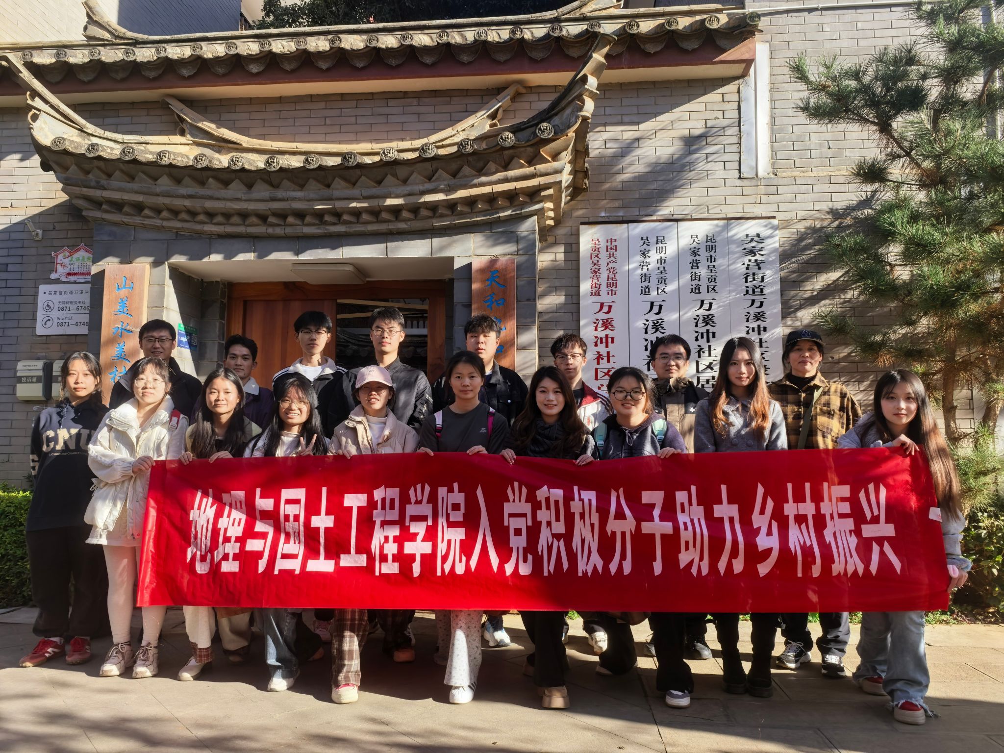 2025年12月19日地国学院党委组织15名入党积极分子,在学院教师党支部两位老师的带领下,前往呈贡区万溪冲社区,开展了一场以“体悟乡村脉动,锤炼党性初心”为主题的实践调研活动。旨在引导青年学子深入基层一线,感受乡村振兴战略的生动实践,在服务与观察中坚定理想信念,提升思想境界与实践能力。