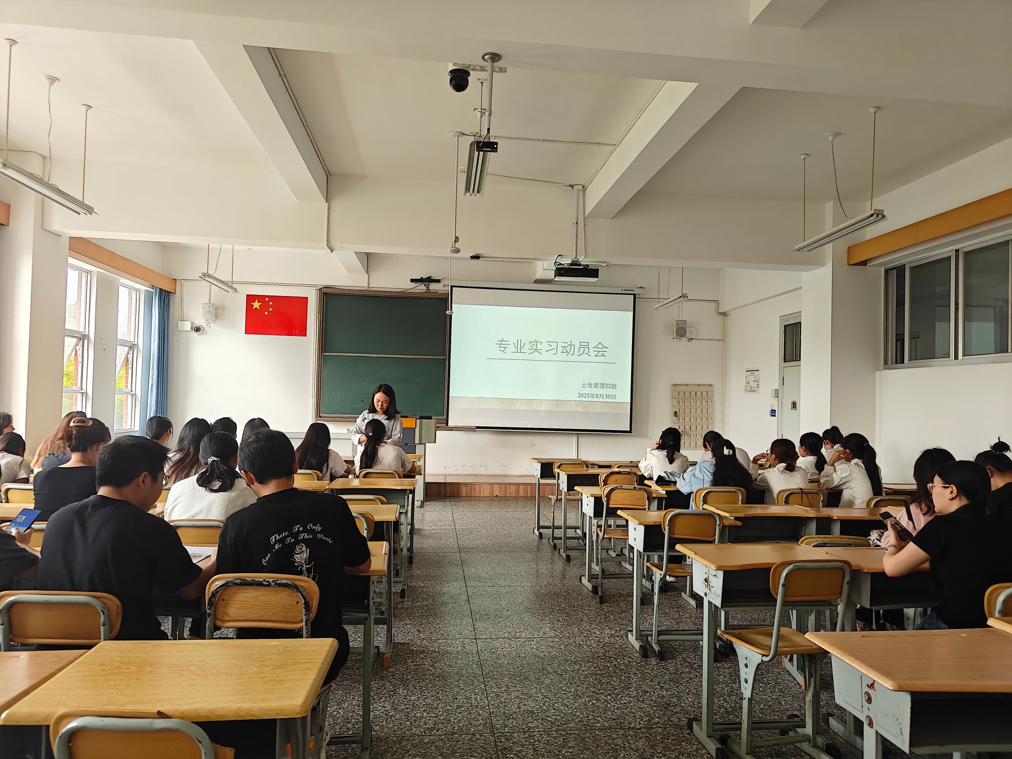 2025年8月30日上午,2022级土地资源管理专业学生于13教107教室召开了专业实习动员大会。本次实习动员大会由专业负责人李兰老师主持,专业任课教师以及22级土地资源管理专业的全体同学参加了动员大会。