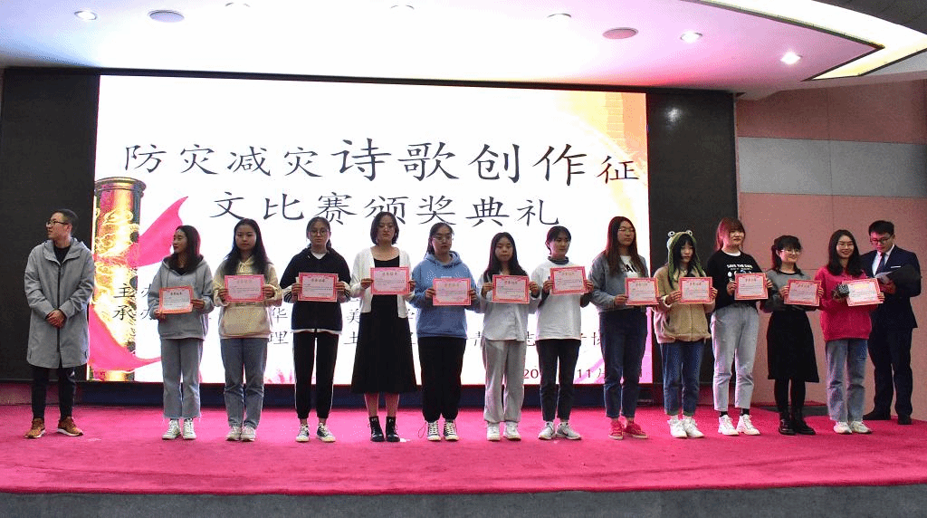 防灾减灾,是每一位大学生的人生必修课。2020年11月20日19:00,由共青团地理与国土工程学院委员会主办,地理与国土工程学院青年志愿者协会、商学院青年志愿者协会以及地理与国土工程学院各社团承办的让“灾”不“再”主题演讲比赛暨防灾减灾系列活动颁奖晚会于玉溪师范学院图书馆多元学术报告厅举行。地理与国土工程学院辅导员王芸娇,青年志愿者协会指导老师王震洋,地理与国土工程学院第二届团委学生会主席欧阳洋、前青年志愿者协会会长苏维群、现团委学生会副书记李玥锦以及校青年志愿者协会理事张依凡出席晚会并担任演讲比赛评委。此次晚会由孙萍豆和王佳璐同学主持。