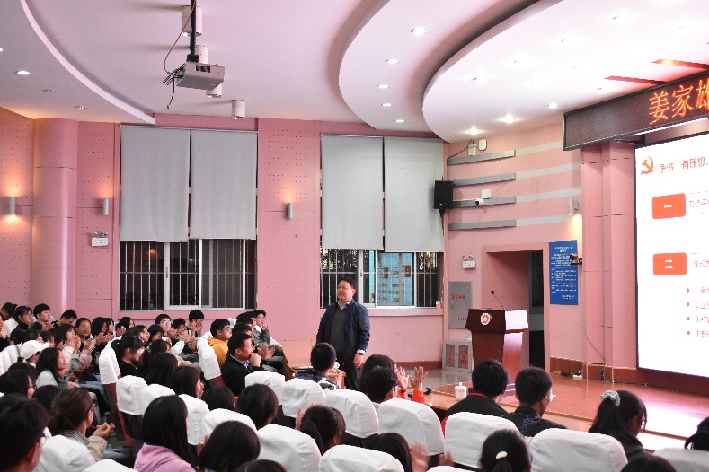 此次思政课的讲授人是玉溪师范学院党委副书记姜家雄,地理与国土工程学院党委书记王寅,辅导员马宾宾参加此次课堂。玉溪师范学院党委副书记姜家雄对如何争做“有理想、有本领、有担当”的新时代青年作了相关讲授,要我们清醒地认识当前思政课建设存在的主要问题,深刻把握党和政府从战略层面提出加强思政课建设的必要性和紧迫性。此次思政课的内容分为三部分:习近平总书记对青年大学生成长的要求,成长为新时代有为青年是时代的呼唤,对新时代青年的希望;地理与国土工程学院党委书记王寅对本次思政课作出了总结。