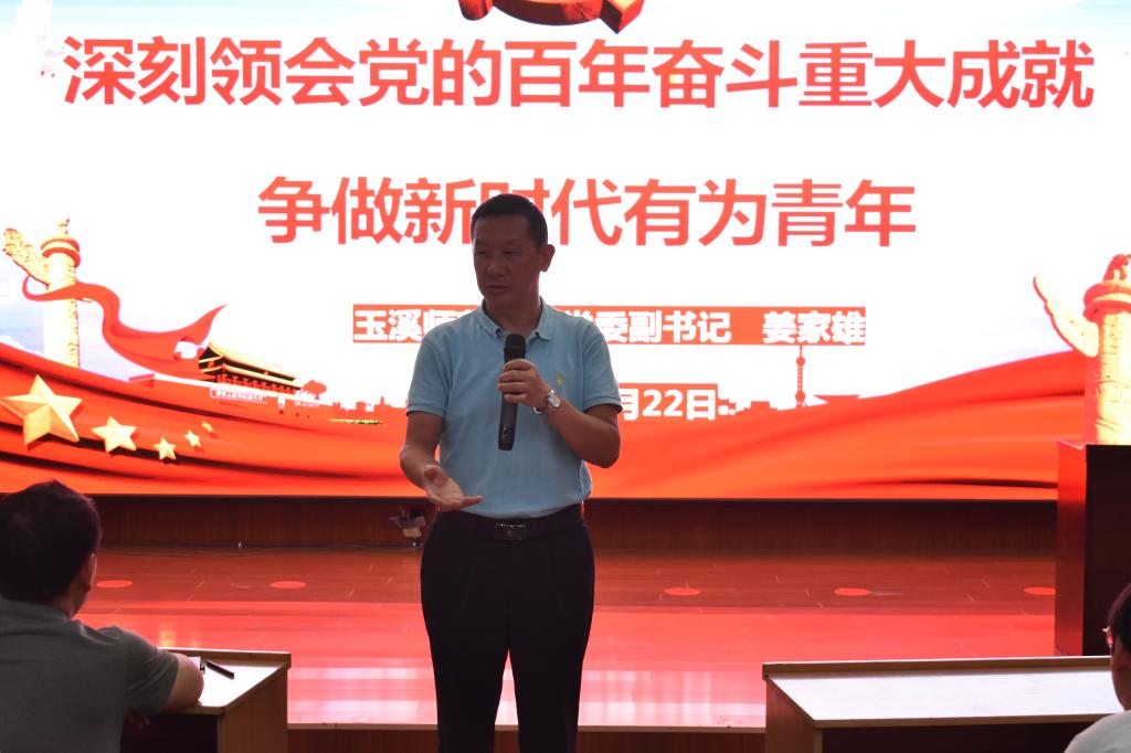 姜家雄同志紧紧围绕着“ 深刻领会党的百年奋斗重大成就,争做新时代有为青年”这一主题,结合党的十九届六中全会通过的《决议》,以身边人讲身边事,以他们成长及奋斗的经历和亲身感悟来展现党的百年奋斗重大成就,教育引导同学们要坚定不移听党话、跟党走,感党恩。