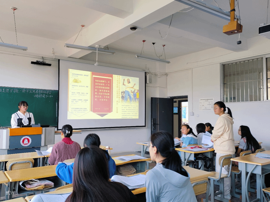 讲解结束后,由学生们分组分享阅读心得,感受礼仪文字的魅力,紧接着,由周老师为同学们对书中的疑虑作指导,外加实践演练和情景模拟,让同学们深刻理解社交中的礼仪规范,以展现自己的诚意和尊重。活动过程中,同学们热情高涨,积极实践不仅学习理论知识,还将学习的知识通过实际操作,如教授如何迎接客人、招待客人、送别客人等礼仪,使得礼仪规则和技巧更容易被记住,并转化为长期记忆根植于心中。最后,周老师对本次活动总结,表达了对《中国礼仪全书》极高的评价,本书具有深刻的象征意义和文化内涵,值得被推荐,希望同学们在阅读《中国礼仪全书》中汲取智慧,在礼仪实践中提升自我修养,培养持续的阅读习惯,将所学知识运用到实际生活中,真正做到学以致用的重要性。